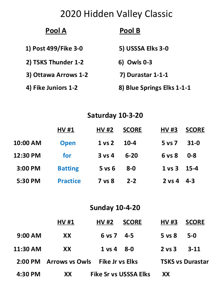 The schedule is now out for the 2020 Hidden Valley Classic Baseball Tournament from October 3-4th. The games for both Jr and Sr teams have been added to the Team Calendar. Good luck to all teams playing! See below for the full schedule and special tournament rules due to Covid-19: