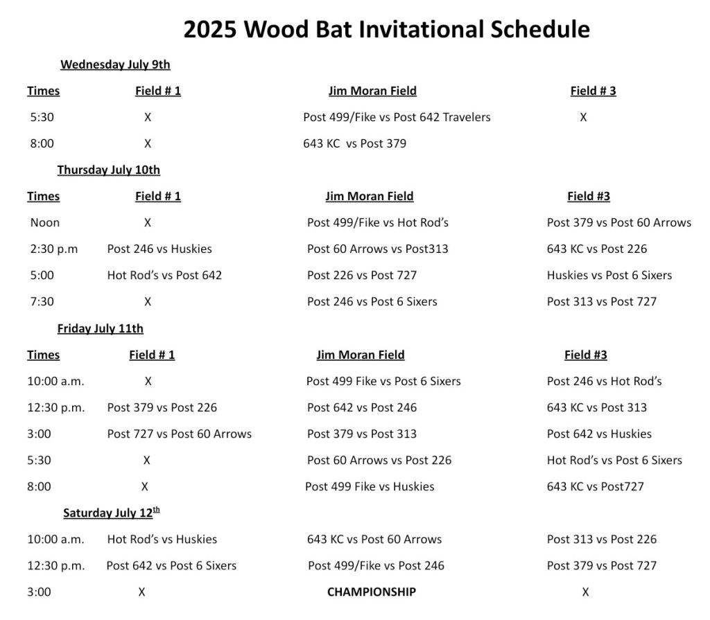 The schedule and pools for our 36th Annual American Legion Wood Bat Invitational can be downloaded from the links below: